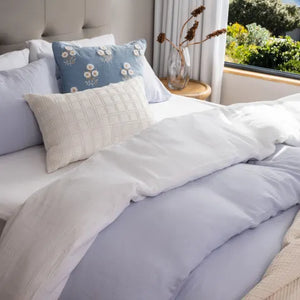 Light, airy and oh-so-soft, this Blue Muslin Cotton Duvet Cover Set is your go-to for warmer nights. Its breathable weave keeps you cool, while the easy-close pillowcases and reusable storage bag make it a breeze to care for.