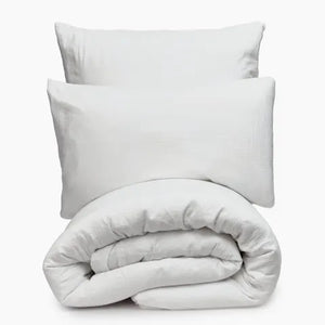 Light, airy and oh-so-soft, this White Muslin Cotton Duvet Cover Set is your go-to for warmer nights. Its breathable weave keeps you cool, while the easy-close pillowcases and reusable storage bag make it a breeze to care for.