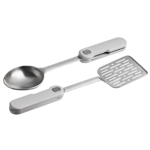 The 2-pieceWildfare Pro Fold & Go Utensil Setpackschef-level toolswhenyou’recooking outdoors. Thebrushed stainless steel 10.25-inchspoon and 10.75-inch spatula aredurably made for searing and serving.And thecleverfoldable design is compactfor efficient storageuntil your nextculinary creation.