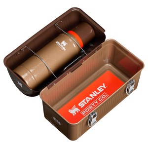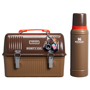 Embody the Posty spirit in a new collaboration that features his designs in Hammertone Coyote Brown and a hit of Blaze Orange. With the Stanley 1913 & Post Malone Collection, this set packs it all. Just like the original, the bottle buckles into the lunch lid. And yeah, that’s a Posty Co. keychain hitching a ride.