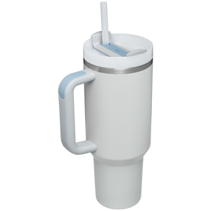 Constructed of recycled stainless steel for sustainable sipping, our 40 oz Quencher H2.0 offers maximum hydration with fewer refills. Commuting, studio workouts, day trips or your front porch—you’ll want this tumbler by your side. Thanks to Stanley’s vacuum insulation, your water will stay ice-cold, hour after hour. The advanced FlowState™ lid features a rotating cover with three positions: a straw opening designed to resist splashes while holding the reusable straw in place, a drink opening, and a full-cover top. The ergonomic handle includes comfort-grip inserts for easy carrying, and the narrow base fits just about any car cup holder.